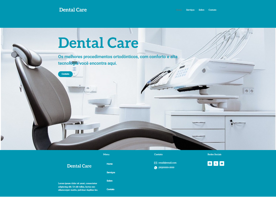 *Seções de apresentação(Home), Serviços, Sobre e Contato.*Formulário para Contato.